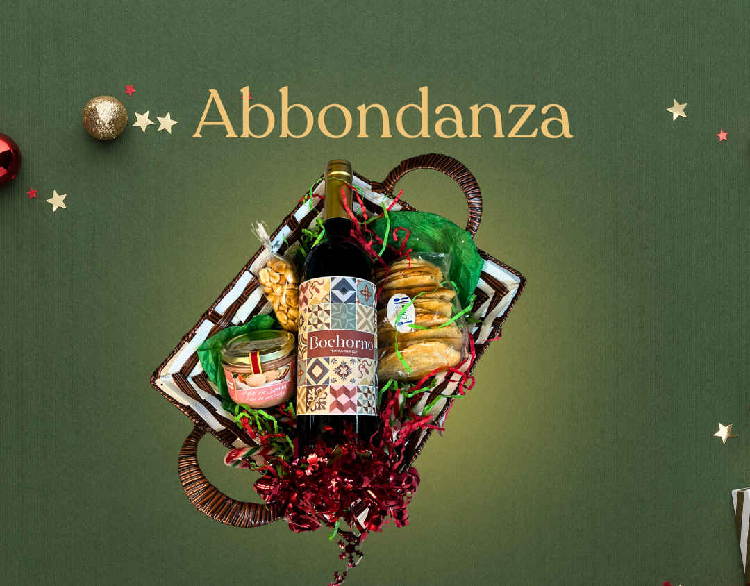 Botella de vino Bochorno, Paté de jamón Coren, Baguetitas, Cono de maní, Chocolates belgas Delafaille, Bastoncillos de menta, Canasta decorativa, Empaque